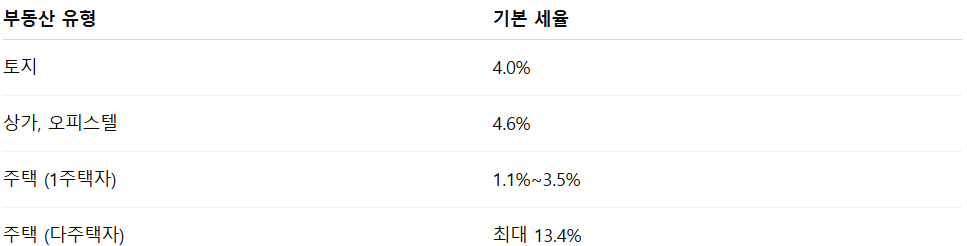 ▪ 일반적인 부동산 취세율